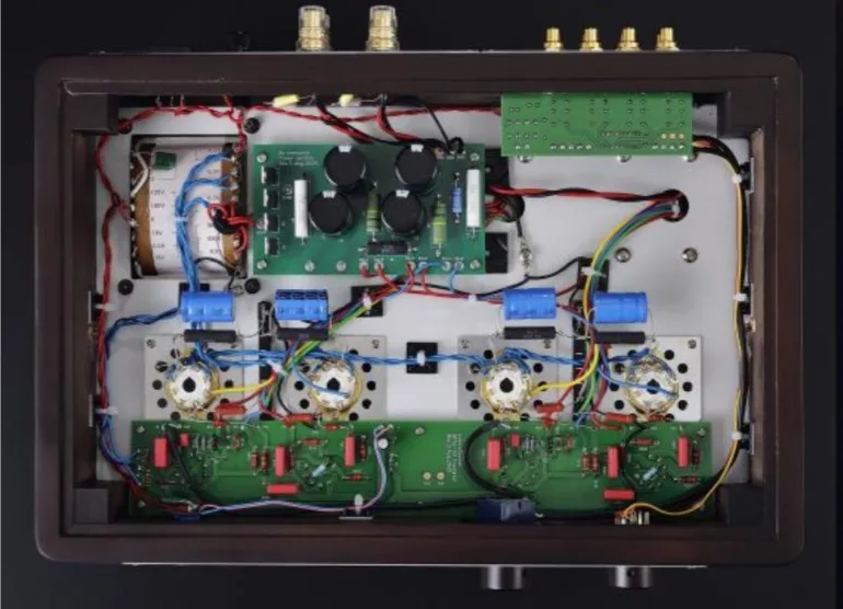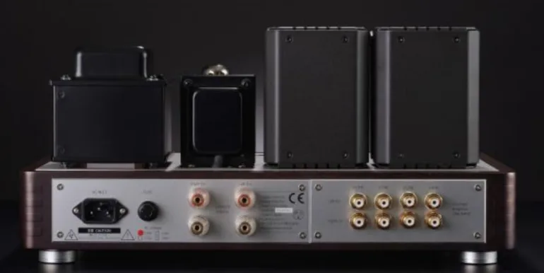 Les composants du transformateur massif et des tubes sensible sont soutenus par cette construction pour reproduire des fréquences moyennes-basses substantielles et des fréquences basses sensibles.