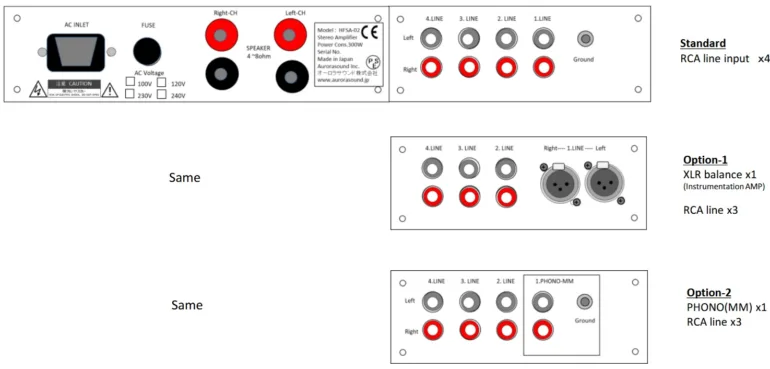 Le transformateur de puissance et le transformateur d’étranglement sont fabriqués sur mesure au Japon pour Aurorasound, tandis que la diode redresseur est un type de carbure de silicium ROHM, offrant un bruit ultra-faible et la capacité de tension la plus élevée à ce jour. Divers terminaux sont également soigneusement sélectionnés, avec un placage d’or à paroi épaisse. Les tubes de sortie EL34 utilisent un réglage automatique auto-bias qui facilite l’entretien et permet le remplacement avec d’autres marques d’EL34 sans avoir besoin d’un réajustement de polarisation.
