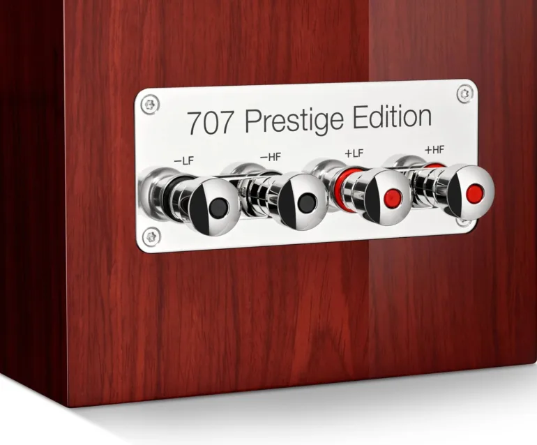 Par ailleurs, le constructeur indique qu’une partie des composants sont issus de la 705 S3 Signature. Les grilles de tweeter à dôme carbone de 25 mm de l’Édition Prestige reprennent la conception et la trame spéciales de la 705 S3 Signature.
