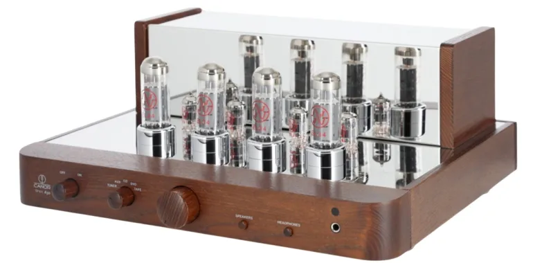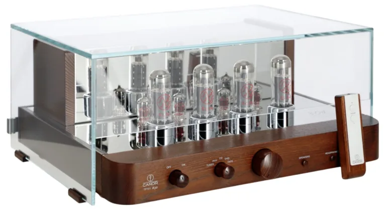 C’est aussi à cette époque que le concepteur rencontrait ses « complices » actuels qui travaillaient alors sur l’amplificateur intégré à tubes TP101. Le prototype de ce premier appareil fabriqué en série a été présenté lors d’un salon à Brno (République tchèque) en avril 1995. La marque CANOR était née avec cet amplificateur intégré à tubes mélangeant le bois noble et l’acier.