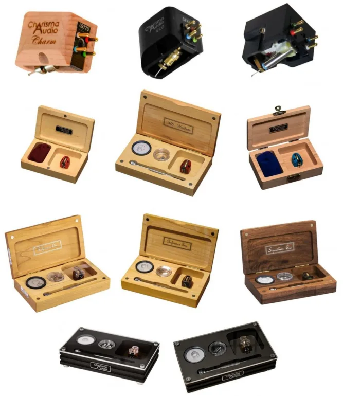 CHARISMA Audio conçoit ses cellules autour de coques usinées à partir de matériaux sélectionnés selon leurs propriétés acoustiques : aluminium, bois précieux, ou composites à amortissement contrôlé. Chaque modèle reçoit un ajustement manuel des paramètres critiques : tension du cantilever, alignement du noyau, centrage de la bobine et ajustement du générateur magnétique.