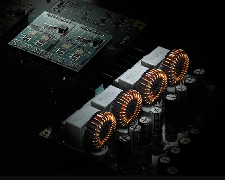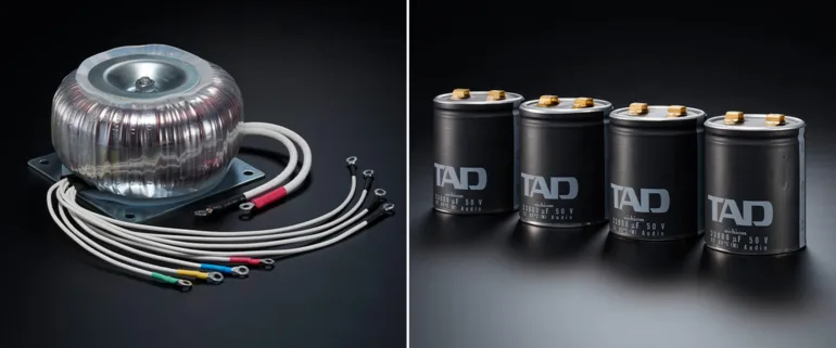 Pour l’étage de sortie, TAD a fait le choix d’une technologie en Classe D. Les transistors FET directs à très faible résistance, intégrés dans des boîtiers sans broches, optimisent la transmission des signaux rapides. L’étage de sortie de classe D à haut rendement génère un minimum de chaleur et élimine le besoin de dissipateurs thermiques conventionnels.
