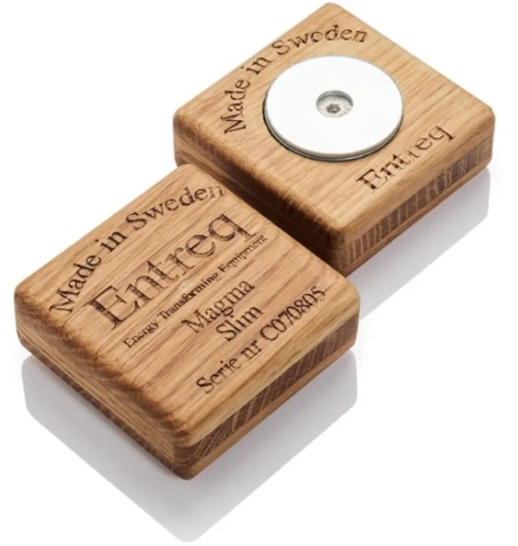 Aujourd’hui, c’est l’occasion de revenir sur les « plaquettes » de découplage Magma Slim. Si en apparence, le bois prédomine, le manufacturier utilise une unité de transformation d’énergie nouvellement développée, faite d’argent, d’acier inoxydable, de tungstène, de cuivre, de magnésium, de zinc, d’acier et de céramique.
