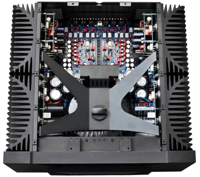Sur le plan technique, la typologie des circuits adopte une configuration double mono, avec une absence de contre-réaction. On relève que les le constructeur adopte des modules de circuits imprimés de qualité militaire quadruple couches à 70 microns de cuivre. L’amplificateur se voit toujours pourvu d’un atténuateur de volume symétrique à micro-processeur à relais 43 pas, utilisant un nombre limité de résistances de haute précision dans le trajet du signal.