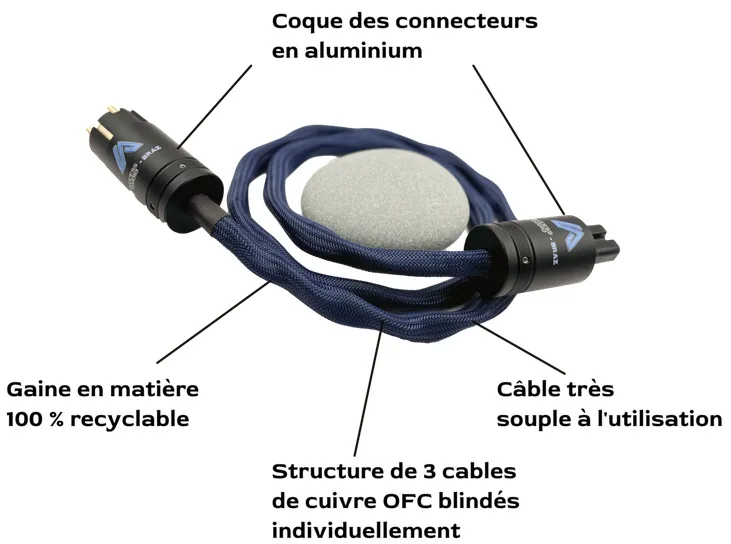 • Structure : composée de 3 câbles de cuivre OFC sans oxygène montés tressés