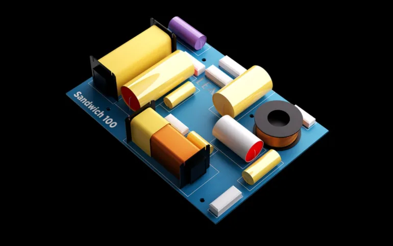 Le filtre a été développé grâce à des mesures approfondies et des heures d’écoute attentives. Utilisant des condensateurs en polypropylène, des inductances à noyau d’air et des résistances à faibles pertes, le filtre est agencé de manière à maintenir un alignement de phase précis entre les haut-parleurs. Ce souci du détail garantit une intégration cohérente sur toute la gamme de fréquences, produisant une image stéréo stable et un équilibre tonal naturel qui reste constant même en cas d’écoute décentrée.