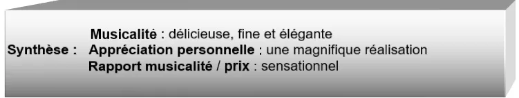 La magnifique limpidité du message sonore nous conforte sur la notion d’ouverture du message sonore et plus particulièrement dans le haut du spectre.