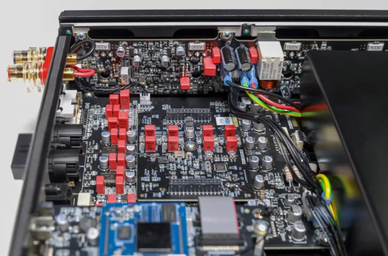 La section numérique comporte quatre entrées : deux S/PDIF coaxiales, une optique Toslink pour les sources PCM numériques à deux canaux et un port HDMI (2.0b) pour l’entrée audio PCM d’une télévision compatible ARC.