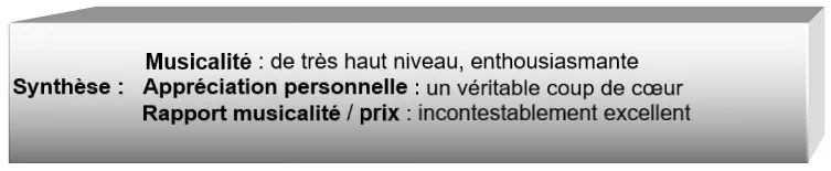 Jamais de confusion, de distorsions : le déroulement des phrases musicales s’effectue sans jamais occasionner un doute ou une interrogation, de quelque nature qu’elle soit, de la part de l’auditeur.