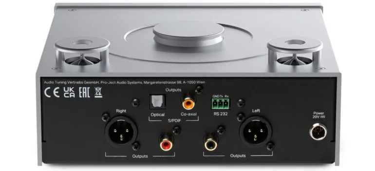 La face arrière comporte 2 paires de sorties Ligne au double format XLR et RCA. PRO-JECT a souhaité compléter sa connectique avec 2 sorties numériques : 1 Coaxiale et 1 optique.