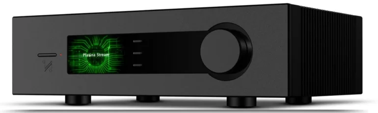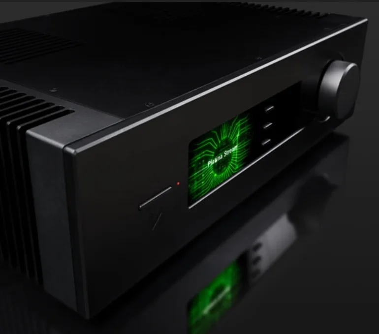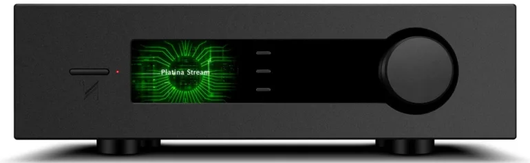 Platina Stream reprend exactement la présentation du l’amplificateur intégré – Dac incluant le magnifique écran couleur LCD IPS 4,3″ 800 x 480 et les deux radiateurs / dissipateurs thermiques latéraux. Il est également paré d’un encodeur en façade complété par la télécommande incluse pour offrir un contrôle précis par menu et des réglages rapides des paramètres. Cet écran permet une navigation complète par menu, une prise en charge multilingue et des informations de lecture en temps réel. Comme l’amplificateur, il peut même se transformer en VU-mètre.