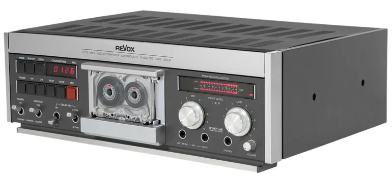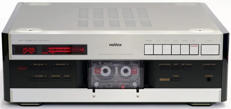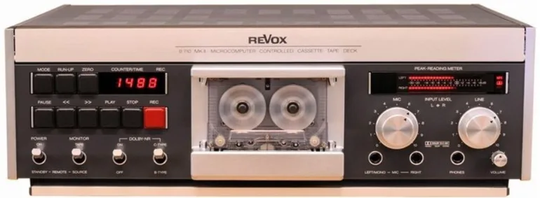 REVOX a construit sa renommée sur l’élaboration de magnétophones à bobines libres. Son créateur, Willi Studer jugeait alors que la cassette avait des propriétés et des performances limitées jusqu’à ce que le constructeur Japonais NAKAMICHI lui démontre le contraire.