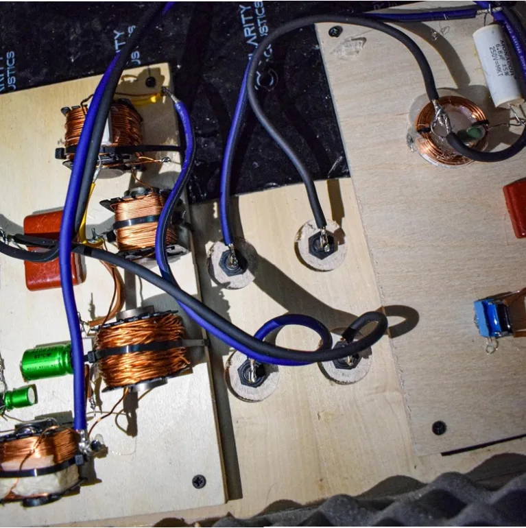 La répartition des fréquences sur les deux haut-parleurs est assurée par un filtre sophistiqué constitué de 18 éléments. Ce filtre complexe utilise des filtres du troisième ordre pour le woofer et le tweeter, garantissant une répartition précise des fréquences et un alignement de phase optimal. La fréquence de coupure est fixée à 2,6 kHz, permettant au boomer de gérer les basses et les médiums tandis que le tweeter prend en charge les aigus, avec un minimum de « chevauchement » et d’interférences.