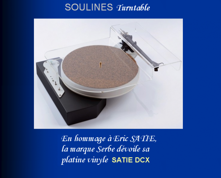 Plutôt pas ou mal connue en France, la marque SOULINES est belle et bien représentée en France par Exclusive Audio qui importe cette marque d’origine Serbe. En hommage à Eric Satie, cette platine vinyle au look épuré et à la facilité d’utilisation déconcertante se présente à un prix très accessible pour une musicalité remplie de sentiments selon les mots du concepteur, et pour la circonstance, ce dernier l’a baptisée SATIE DCX.