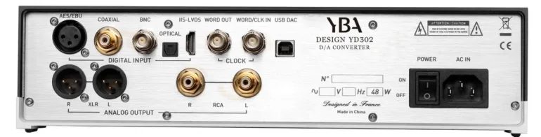 Pour les utilisateurs les plus exigeants, le YD 302 prend même en charge une horloge maître externe. Prise en charge de fréquences de sortie 44,1 kHz et d’entrée 44,1 kHz / 10 MHz.